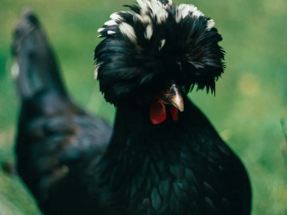 De Hollandse kuifhoen is ook een vriendelijk en rustig kippenras. Op hun slanke zwarte lijfje dragen ze een grote witte bolle kuif, hun typerende kenmerk. Deze sierkippen worden niet gemakkelijk of vaak broeds en leggen ongeveer 100 eitjes per jaar.