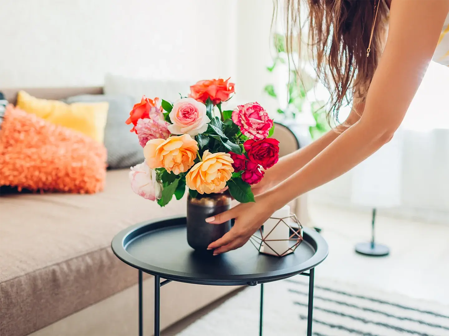 - Bloemen houden van een constante kamertemperatuur, het is dus geen goed idee je boeket te plaatsen op een zongerichte vensterbank, bij een verwarming of dicht bij open ramen of deuren.