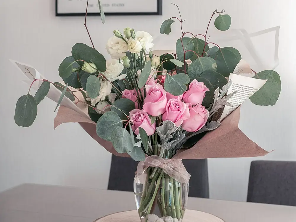 Kies bij voorkeur voor een glazen vaas. Die hebben een glad oppervlak waar bacteriën zich moeilijker aan kunnen vasthechten. Stem de vaas tenslotte af op de vorm van je boeket: een brede ruiker in een brede bloemenvaas, hoge smalle bloemen in een hoge smalle vaas.