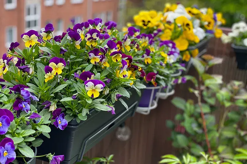 Plant ze in een vorstbestendige pot met goede drainage. Geef ze regelmatig water, zeker tijdens droge najaarsdagen, maar niet tijdens de vorst! Verwijder ook de uitgebloeide bloemen, zo stoppen de viooltjes geen energie in zaadvorming, maar blijven ze nieuwe bloemetjes maken en stralen.