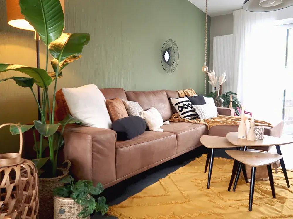 Denk hierbij aan welke kleuren passen bij je interieur en welke sfeer je wilt creëren. Wij kozen deze keer voor een gezellig herfstinterieur met warme kleuren. Daarbij combineerden we niet te veel verschillende tinten omdat het dan drukker zou worden, maar dat wil niet zeggen dat je je moet beperken tot 1 kleur. Kies verschillende kleuren binnen hetzelfde kleurenpallet of ga net voor een contrasterende kleur als accentkleur en creëer zo diepte en contrast in je interieur.