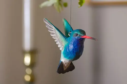 Kolibrie in lindenhout - handgemaakt - Breedsnavelkolibrie - set van 2 stuks