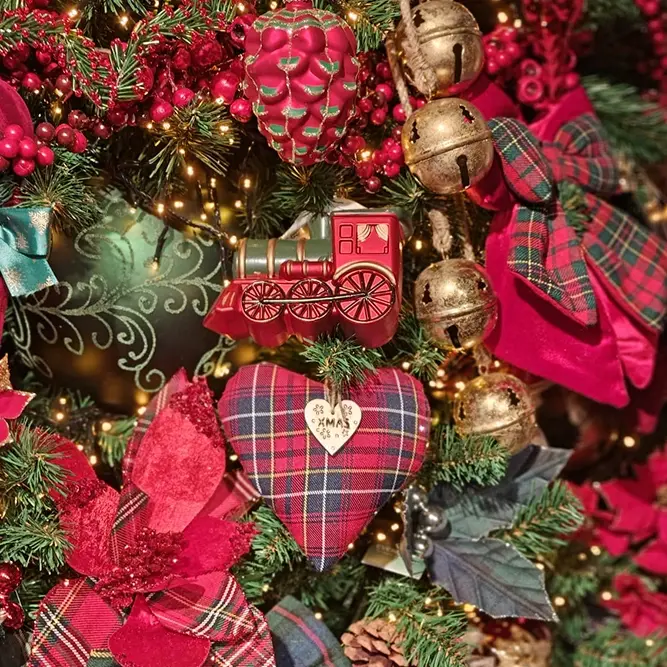 De Scottish Highlands combineren het klassieke rood en groen met gezellige ruitjes en warme berenfiguren, waardoor een knusse en charmante kerstwereld ontstaat. Overal in dit thema vind je speelse en vrolijke details die de ruimte omtoveren tot een gezellige winterbestemming.