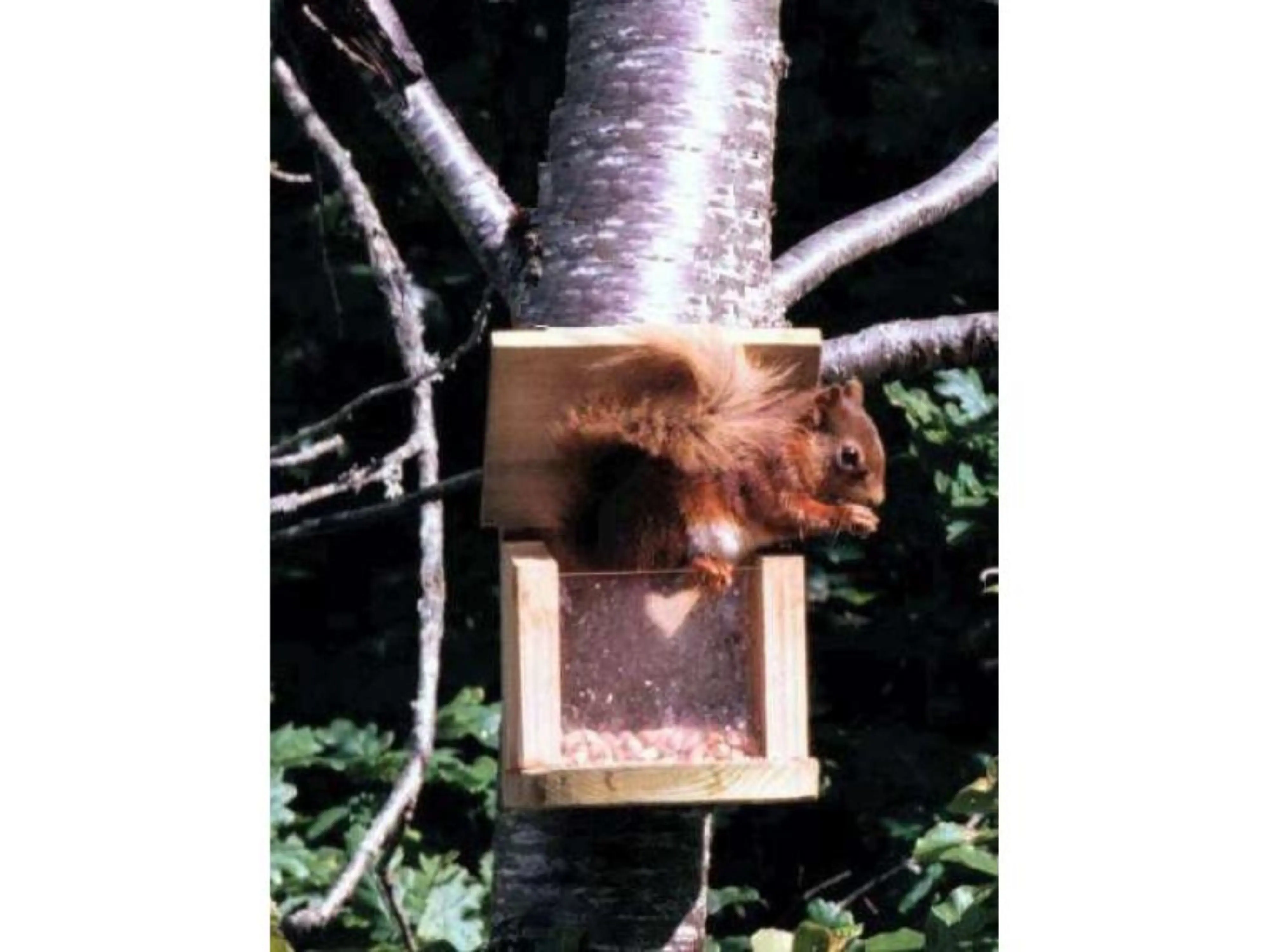 Eekhoorns zijn intelligente dieren en leren snel hoe zij bij allerhande lekkernijen kunnen komen, hoe moeilijk dat soms ook lijkt te zijn. Het dak sluit weer op het moment dat de eekhoorn klaar is met eten zodat andere dieren en vogels niet bij het voer kunnen.