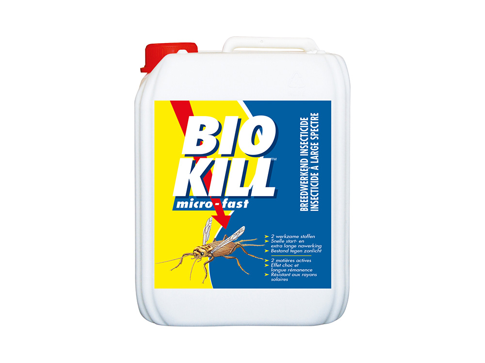 Biokill Micro-Fast heeft een zeer breed werkingsspectrum tegen vliegende en kruipende insecten. Het werkt zeer goed zowel in als rondom de woning. Het is ook een krachtige mand- en tapijtspray tegen ectoparasieten (vlooien, teken, mijten,...) bij huisdieren.