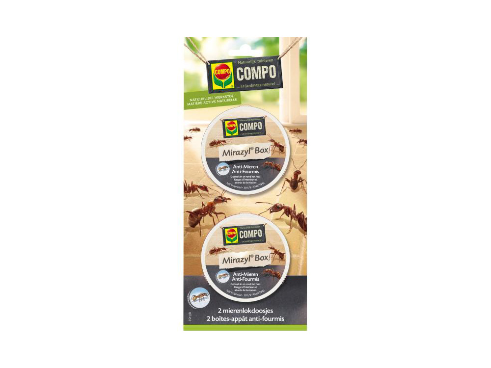 Met de Mirazyl lokdoosjes van Compo kan je snel en betrouwbaar mieren en mierennesten bestrijden. De mieren lokdoosjes kunnen zowel binnen als buiten op het terras geplaatst worden.