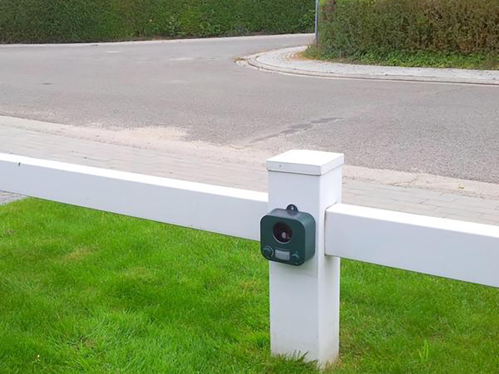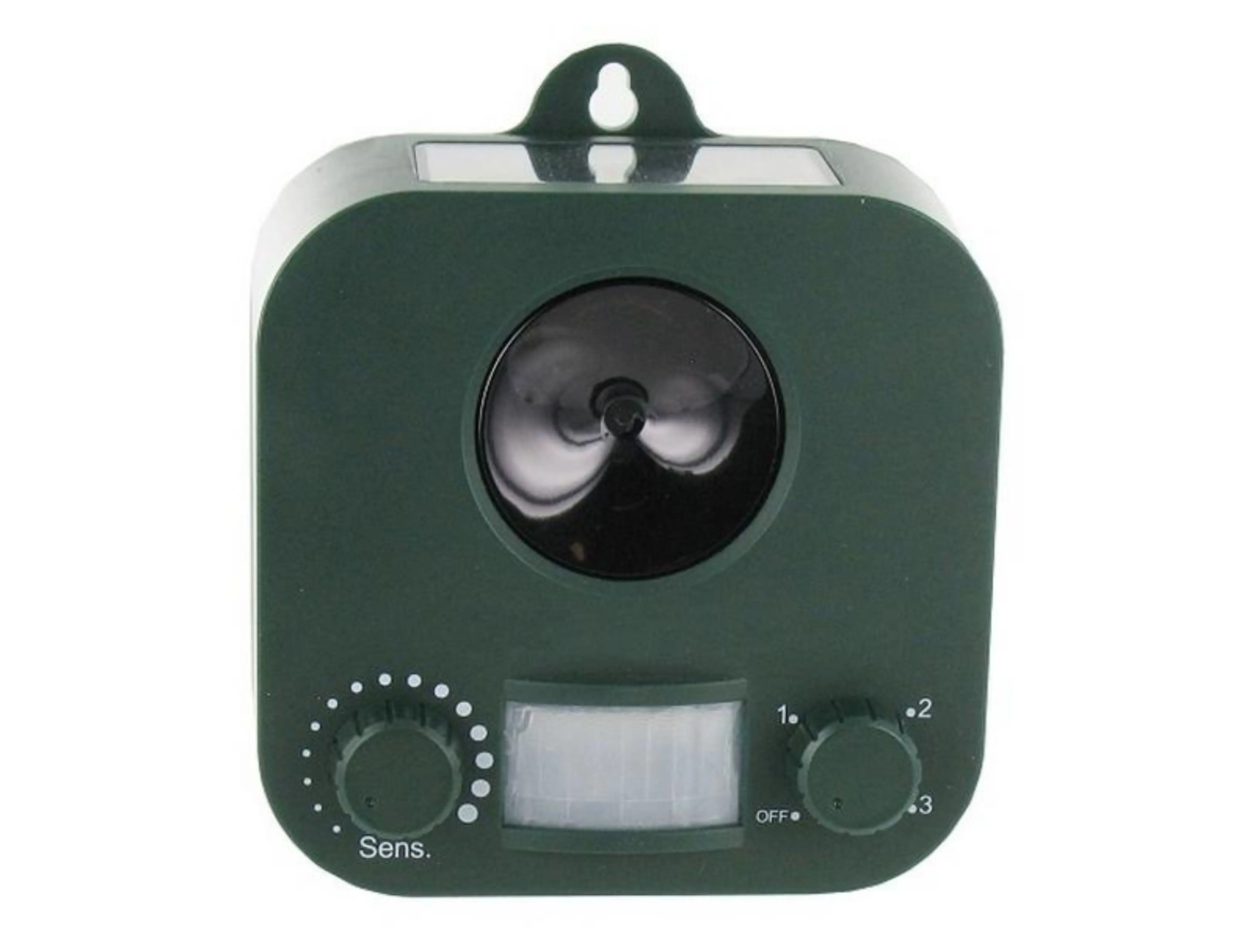 Verjaag konijnen, katten, honden, vossen en marters met dit toestel op zonne-energie. Zodra de infrarode detector een beweging waarneemt, treedt het apparaat gedurende 7 seconden in werking. Het toestel zendt een ultrasoon geluid uit waardoor de indringer schrikt en de locatie zal verlaten.