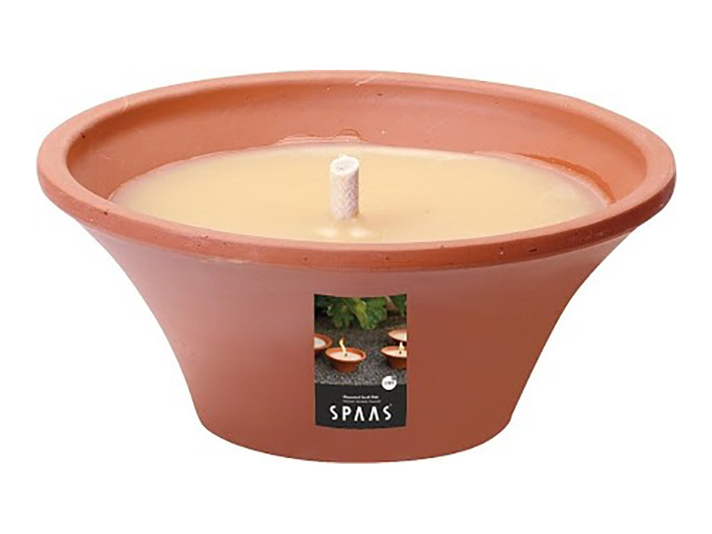 Deze decoratieve tuinkaars in terracottaschaal brengt sfeer en licht in de tuin! Deze grote tuinkaars zal dankzij de speciale wiek niet doven bij een beetje wind of regen. De ideale sfeerbrenger op een tuinfeest.