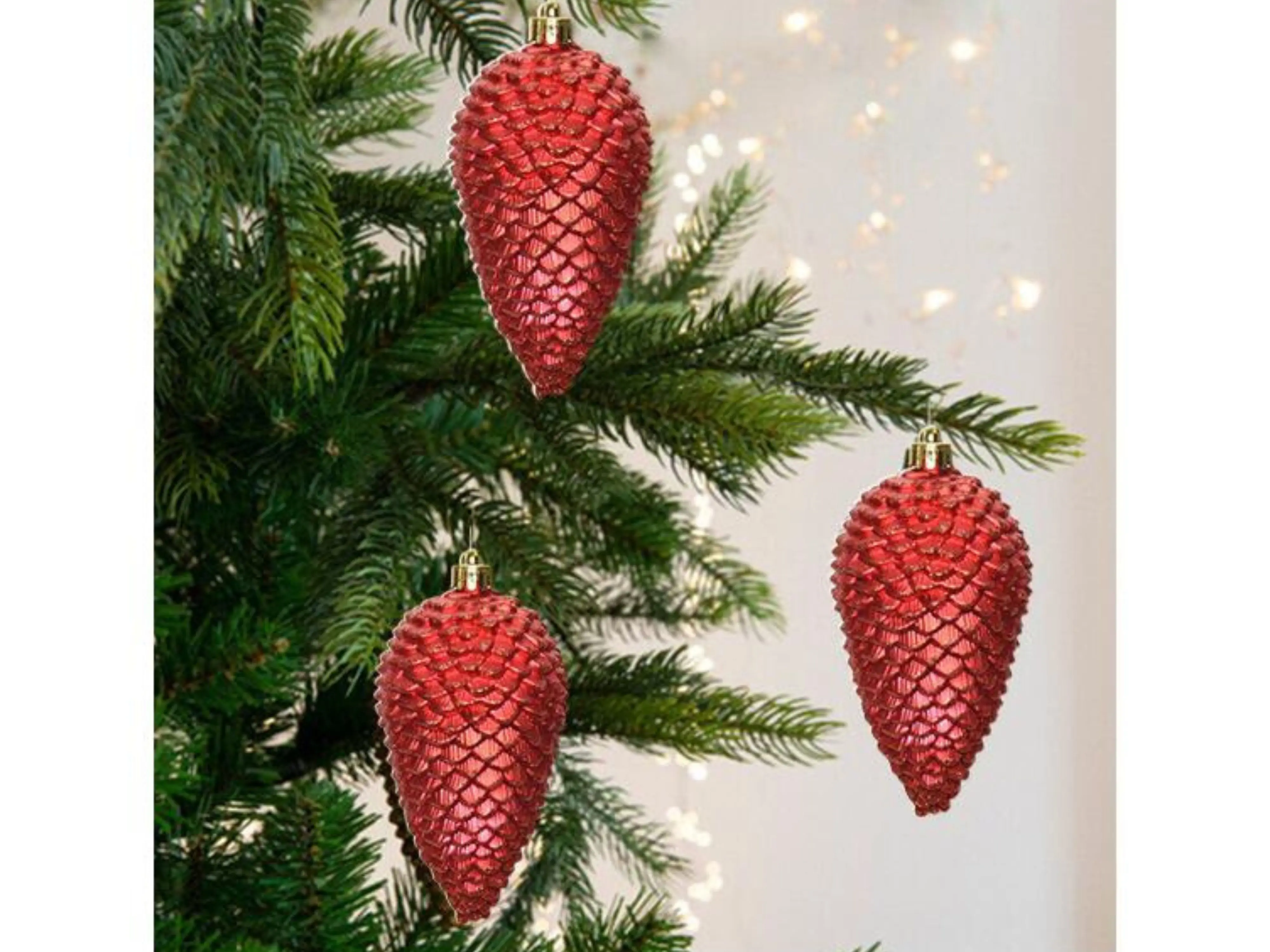Met deze schitterende, glinsterende dennenappels heb je enkele leuke extra's om jouw kerstboom te versieren. Gemaakt van kunststof hoef je je geen zorgen te maken over gebroken ornamenten als ze onverhoopt op de grond belanden. Ideaal als je samen met de kinderen de kerstboom wilt versieren of als er huisdieren in de woonkamer rondlopen.