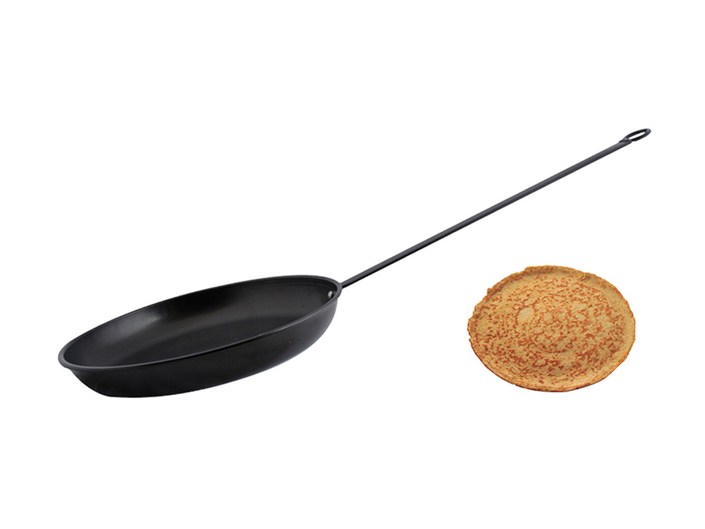 Buitenkoken wordt een feest met de speciale pannenkoekenpan van Esschert design. Voorzien van een lange steel voor veilig gebruik boven een open vuur, zoals een vuurkorf of kampvuur. Gemaakt uit carbonstaal staat de pan garant voor jarenlang lekkere pannenkoekenbak!
