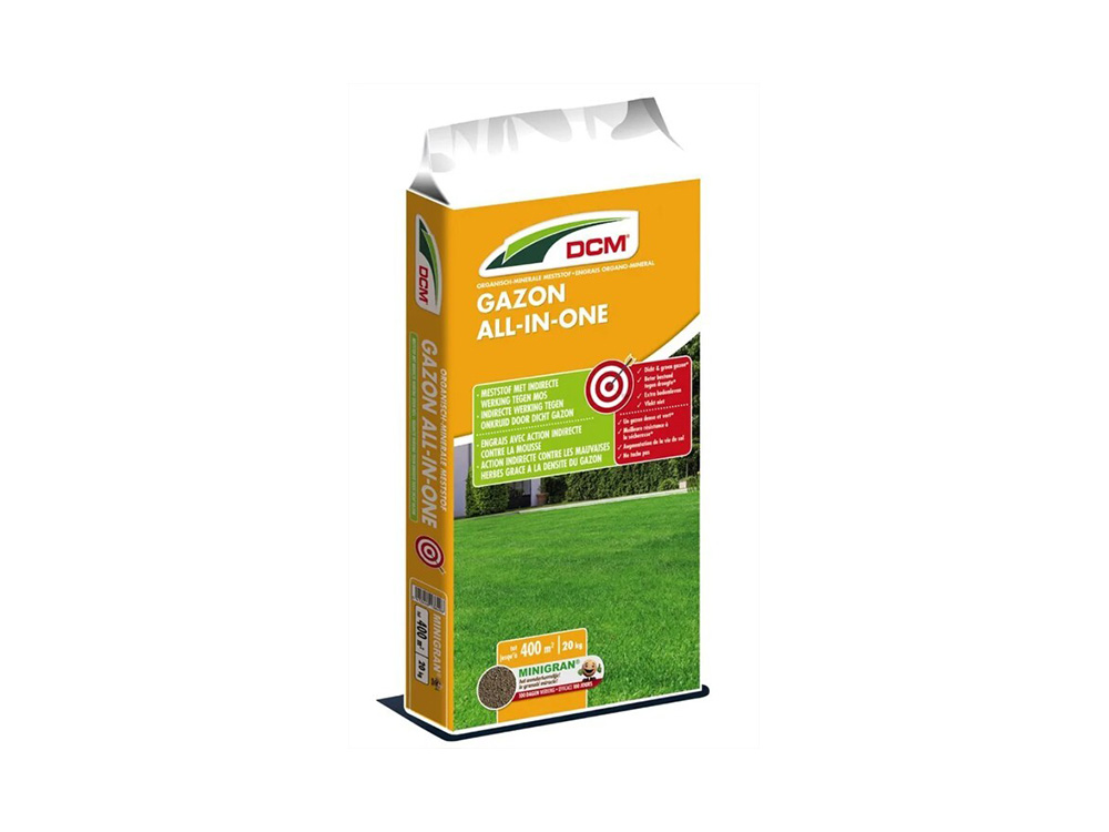 DCM Gazon All-in-One is een complete en stikstofrijke gazonmeststof die zorgt voor een dicht gazon. Een dicht gazon laat minder mos- en onkruidgroei toe.