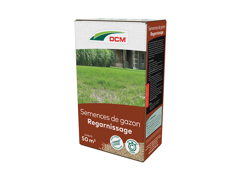 DCM Graszaad voor herstel van kale plekken en doorzaai van gazon. Het bevat snelkiemende graszaden die goed inwortelen in bestaande gazons, ideaal na het verticuteren en ontmossen van het grasveld.