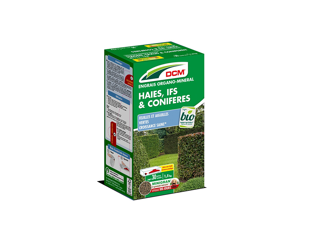 DCM Meststof Hagen, Taxus & Coniferen is afgestemd op de voedingsbehoeften van coniferen, naaldbomen, sparren, taxus en hagen. Toepasbaar in de biotuin.