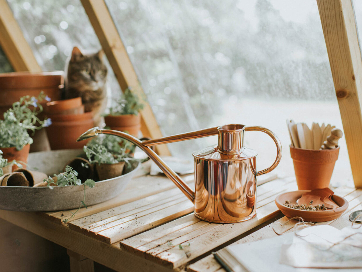 Onbehandelde metaalproducten, zoals deze, zullen door de jaren heen een patina ontwikkelen. Als de gieter vlekken op het oppervlak begint te ontwikkelen, en je hem liever terug laat blinken, zal een poetsmiddel de oorspronkelijke glans herstellen.