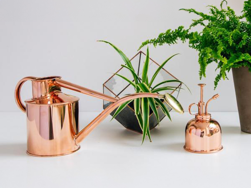 De gieter kan zowel binnen als buiten worden gebruikt en wordt vergezeld door een authentieke geelkoperen of koperen Haws vernevelaar (300 ml) voor het fijn besproeien van zaailingen, kamerplanten en orchideeën.