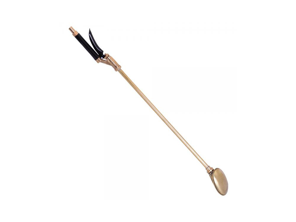De lans is volledig uit geelkoper (messing) vervaardigd en is voorzien van een afschroefbare fijne broes. Deze broes is gemakkelijk rechtstreeks op een waterdarm aan te sluiten waarna je de waterdarm vast kan zetten met een spanband.