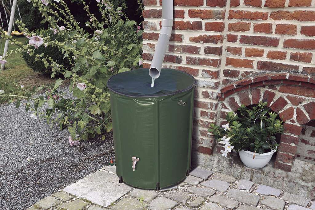 De opvouwbare watertank is de ideale oplossing voor het opvangen van regenwater van daken van tuinkassen en tuinhuisjes. Het opgevangen water kan onder meer gebruikt worden om planten water te geven. Langs het afritsbare deksel kan je makkelijk emmers vullen, en aan de onderzijde is er tevens een aftapkraantje voorzien. In het deksel bevindt zich een aansluitpunt voor de regenpijp. Een bladzeef zorgt ervoor dat bladeren en dergelijke niet in de watertank terecht komen. Ook is er een opening aan de zijkant voor het toevoegen van water via een tuinslang of andere leiding of voor het koppelen van meerdere vaten. In de winter, als de tank niet wordt gebruikt, kan je hem compact opbergen tot het volgende seizoen.