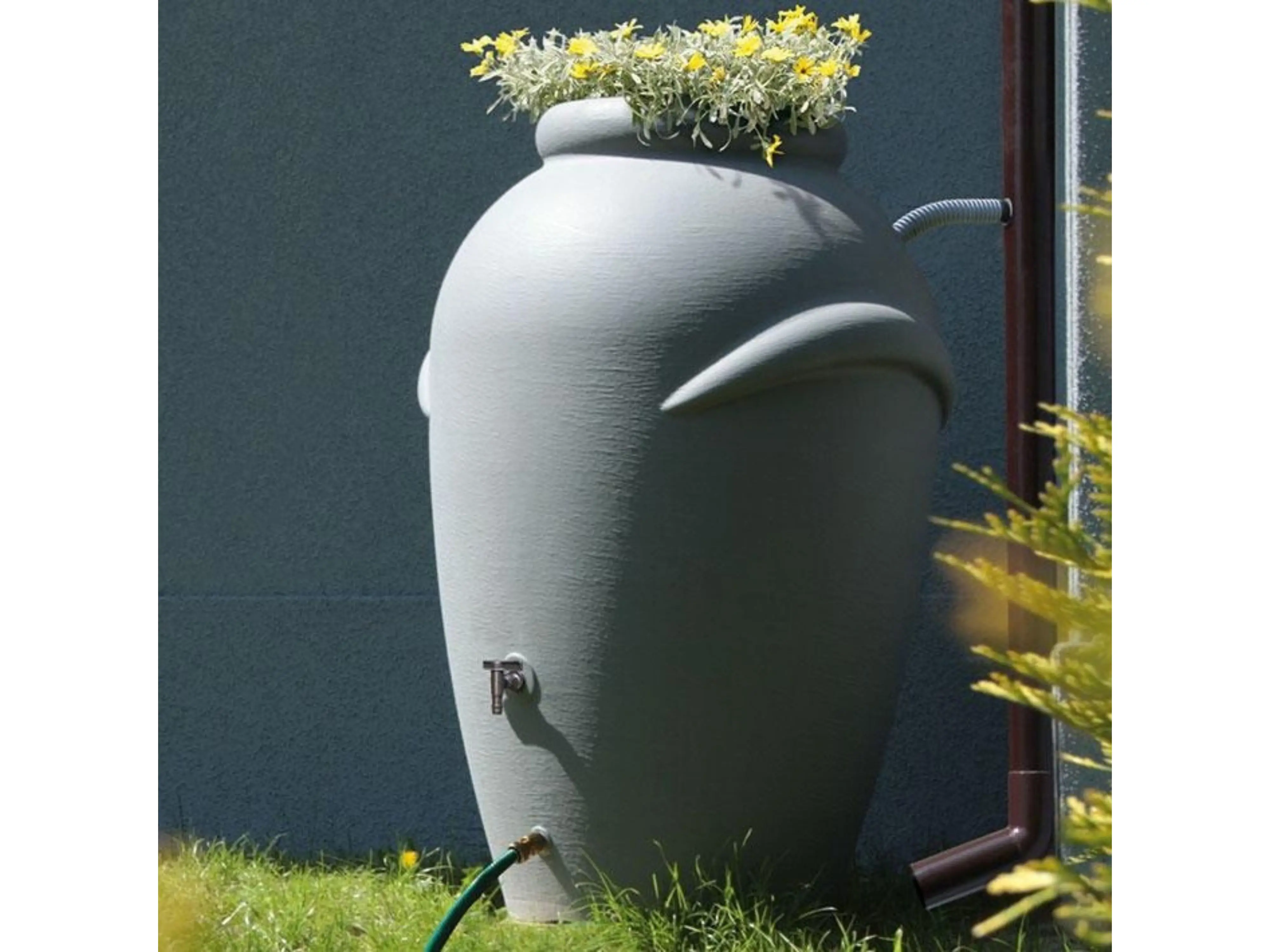 Mooie decoratieve kunststof regenton voor de opvang van regenwater. Deze kwalitatieve regenton heeft bovenin een opening met deksel van Ø 26 cm. Ze is gemaakt uit duurzaam, UV-bestendige kunststof en ziet er net uit als een grote waterkruik.