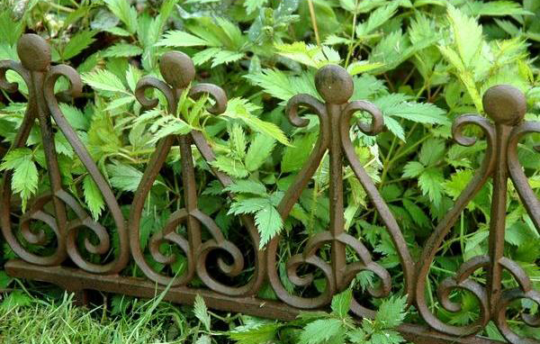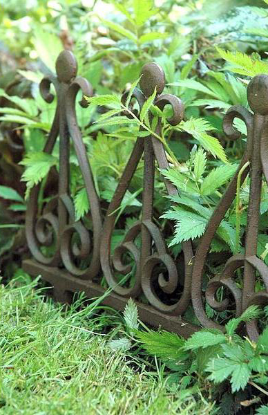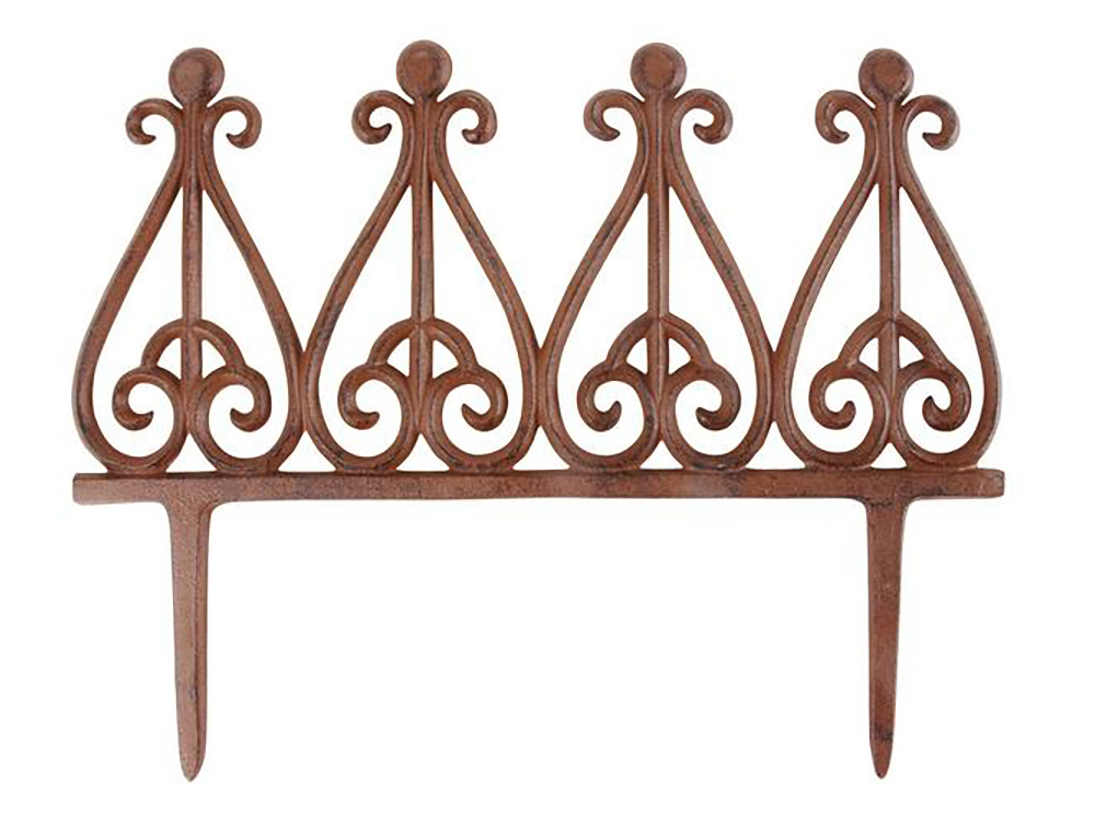 Een prachtig Victoriaans perkhekje van gietijzer, met elegante krullen die een vleugje charme toevoegen aan elke buitenruimte. Perfect om bloemperken, grasvelden of paden te omlijnen en te verfraaien.