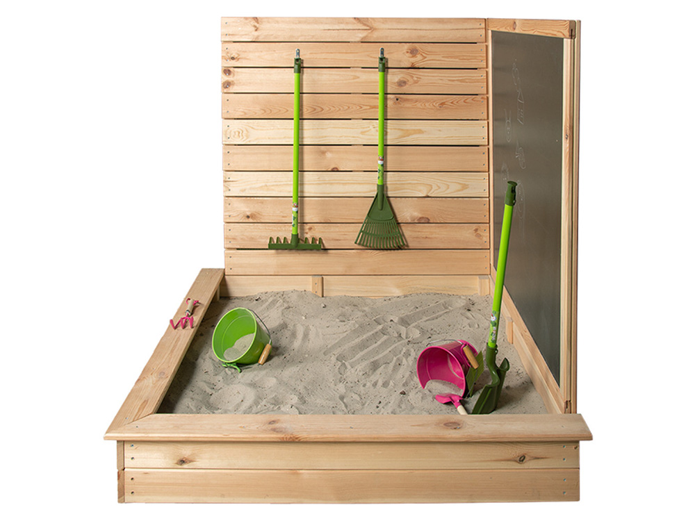 In deze hoekzandbak met schoolbord van Esschert Design is het speelplezier en de creativiteit eindeloos!