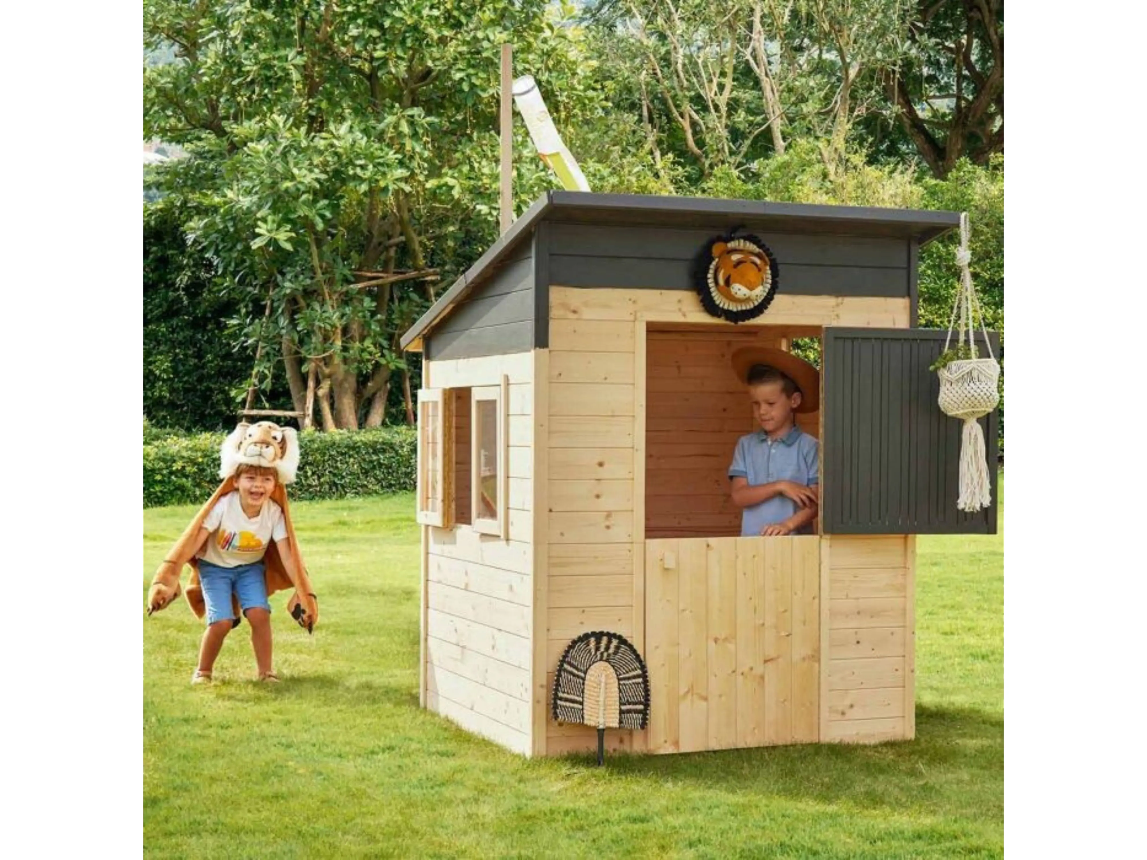 Het speelhuis Santa Monica is gemaakt van kwalitatief gedroogd hout, waardoor het duurzaam en stabiel is. Met een breedte van 127 cm en een lengte van 160 cm neemt dit speelhuis niet veel ruimte in beslag, waardoor het perfect is voor kleine tuinen of beperkte buitenruimtes.