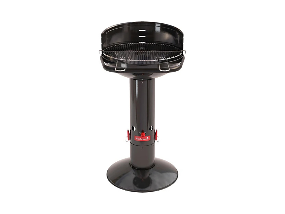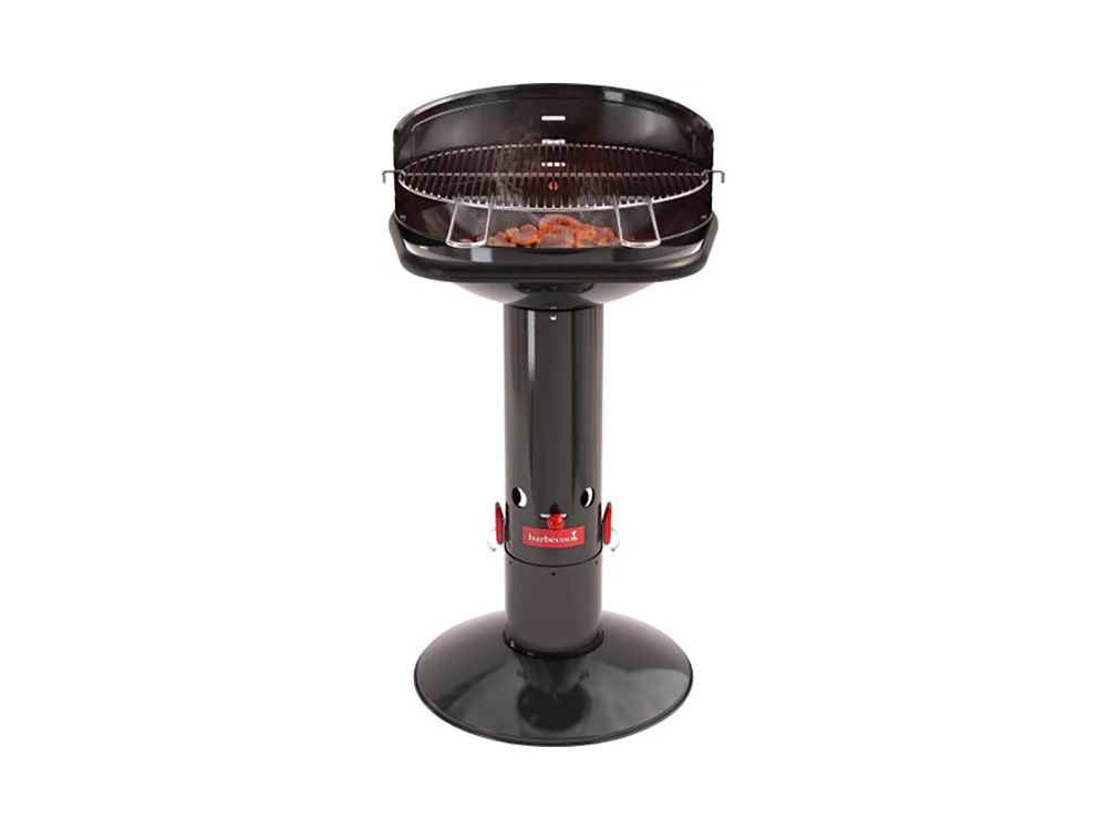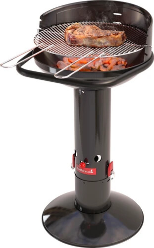 Het verchroomd rooster is verstelbaar in drie posities. Deze uitvoering van Barbecook barbecue Loewy heeft een zwarte look en is gemaakt uit geëmailleerd staal.