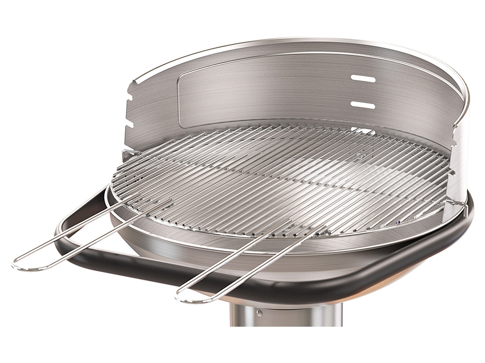 Deze barbecue heeft een brede voet met waterreservoir voor meer stabiliteit. Dit water kan nadien worden gebruikt om de resterende as te blussen, een handig Quickstop-systeem.