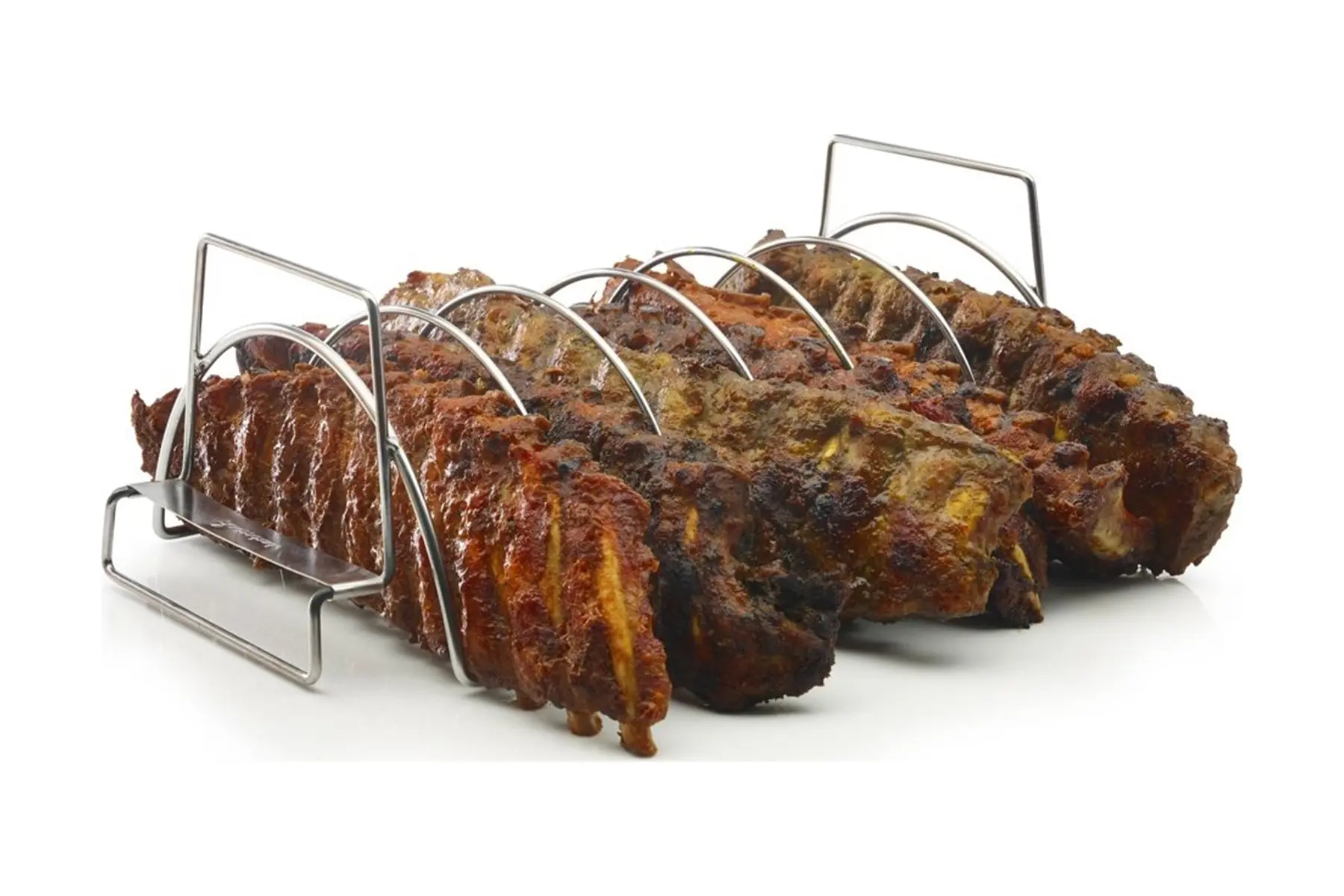 Doordat je alle stukken vlees mooi in een ribrek sorteert, heb je nog voldoende plaats om andere bereidingen klaar te maken. Aan de zijkant is dit BBQ-accessoire voorzien van handvatten zodat je het rek makkelijk van je barbecue kunt halen.
