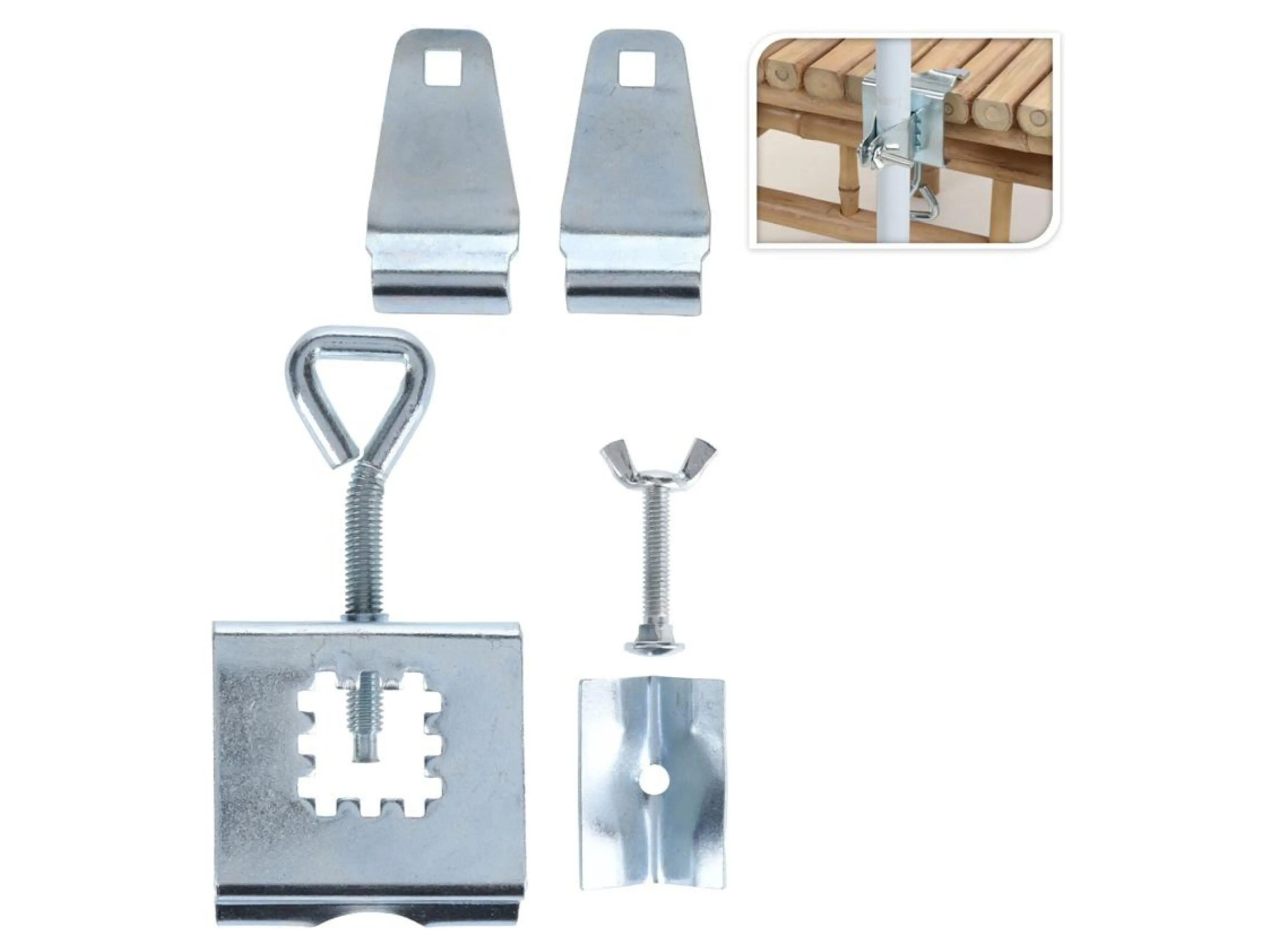 De parasolklem bestaat uit sterk metaal en is door de schroef makkelijk verstelbaar. Zo passen er parasols in met diameter 22 tot 28 mm. Via het handige schroefsysteem bevestig je de houder aan de balustrade, plaats de stok van de parasol in de houder en open de parasol. En nu volop genieten van een schaduwplek op jouw dakterras of balkon.