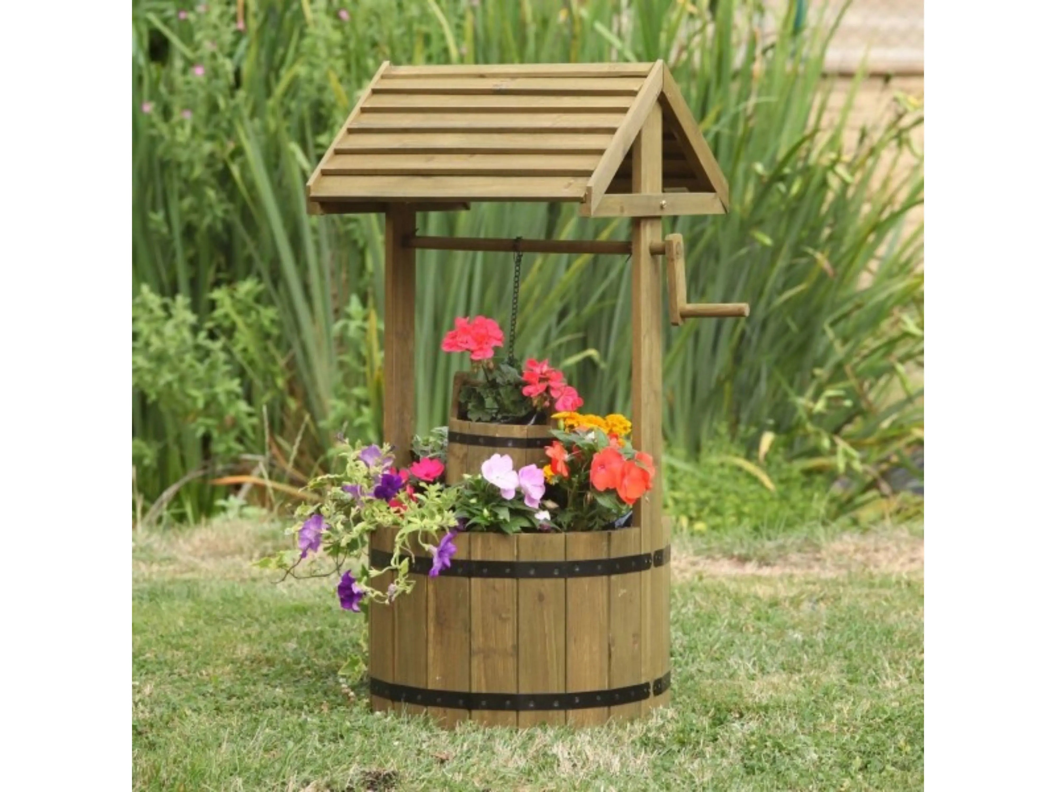 Deze wensput in hout spreekt tot de verbeelding. Zet deze decoratieve bloembak op een leuke plaats in de tuin en beplant de 'Wishing Well' met kleurrijke éénjarigen.