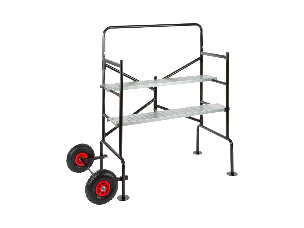 Deze handige vouwsteiger is voorzien van wieltjes met rem, ze kan gemonteerd door een standaarddeur gereden worden. Deze hobbystelling is voorzien van een tweedelig antislipplatform waarbij de delen op verschillende hoogtes geplaatst kunnen worden.