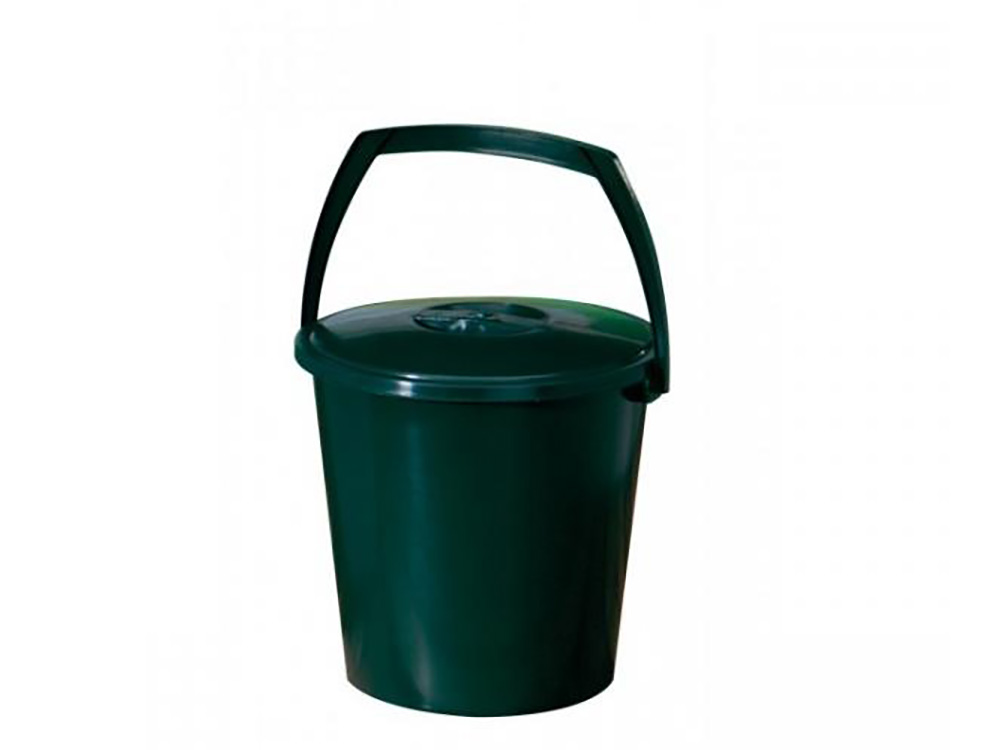 Een handige emmer met deksel en handvat voor talloze mogelijke toepassingen, vervaardigd uit gerecycleerd polypropyleen.