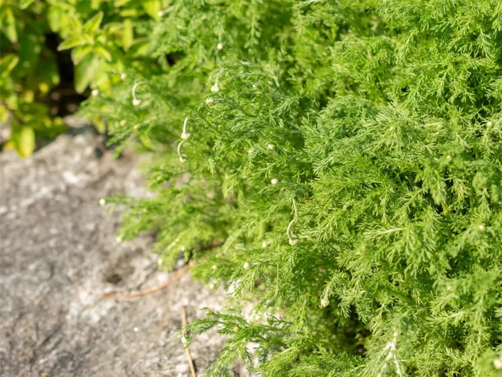 Het koperknoopje is een uitstekende bodembedekker die gemakkelijk belopen kan worden. Dit kleine plantje, met een hoogte van slechts 5 tot 7 cm, produceert talrijke subtiele bloemetjes die een aangename geur verspreiden. Wanneer het op de juiste plek wordt geplant, groeit het snel uit tot een dichte mat van bruingroene bladeren, die hun kleur zelfs in de winter behouden. De geveerde blaadjes doen denken aan miniatuurvarens en voegen een decoratief element toe. In grote borders combineert het koperknoopje mooi met struiken zoals hortensia's en Japanse esdoorns (Acer palmatum).