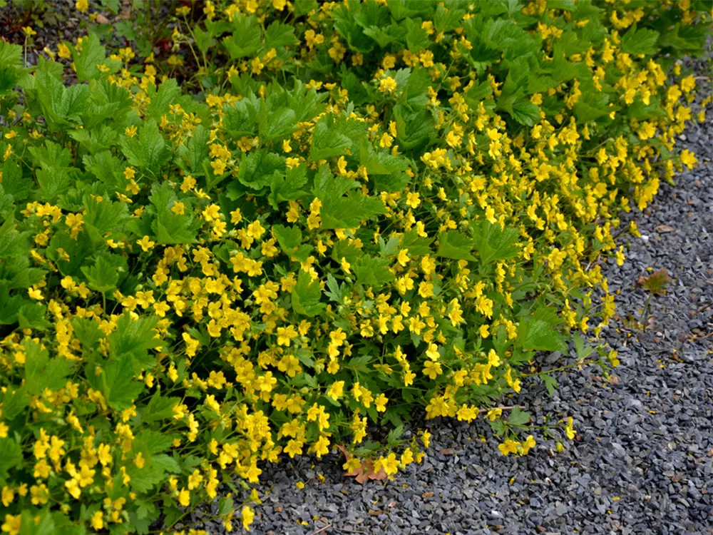 Deze plant is een uitstekende bodembedekker die een dichte, groene laag vormt, zelfs tijdens de winter, waardoor onkruid weinig kans krijgt om door te komen. Hoewel de plant enige mate van belopen kan verdragen, is het aan te raden om stapstenen te plaatsen om een doorgang te maken. Op zonnige plekken bloeit deze aantrekkelijke plant met gele bloemtrossen die bijen en hommels aantrekken.