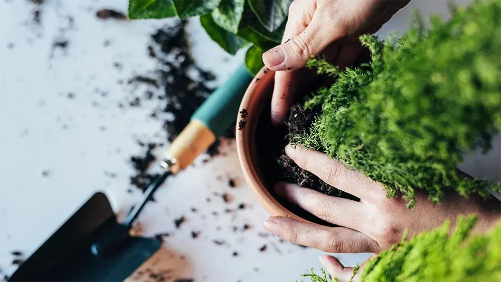 - Wanneer de pot na een paar jaar te klein wordt voor de kamerplant, dan is het nodig om de plant te verpotten. Kies dan voor een nieuwe pot die aan de rand minimaal 2 cm groter is.