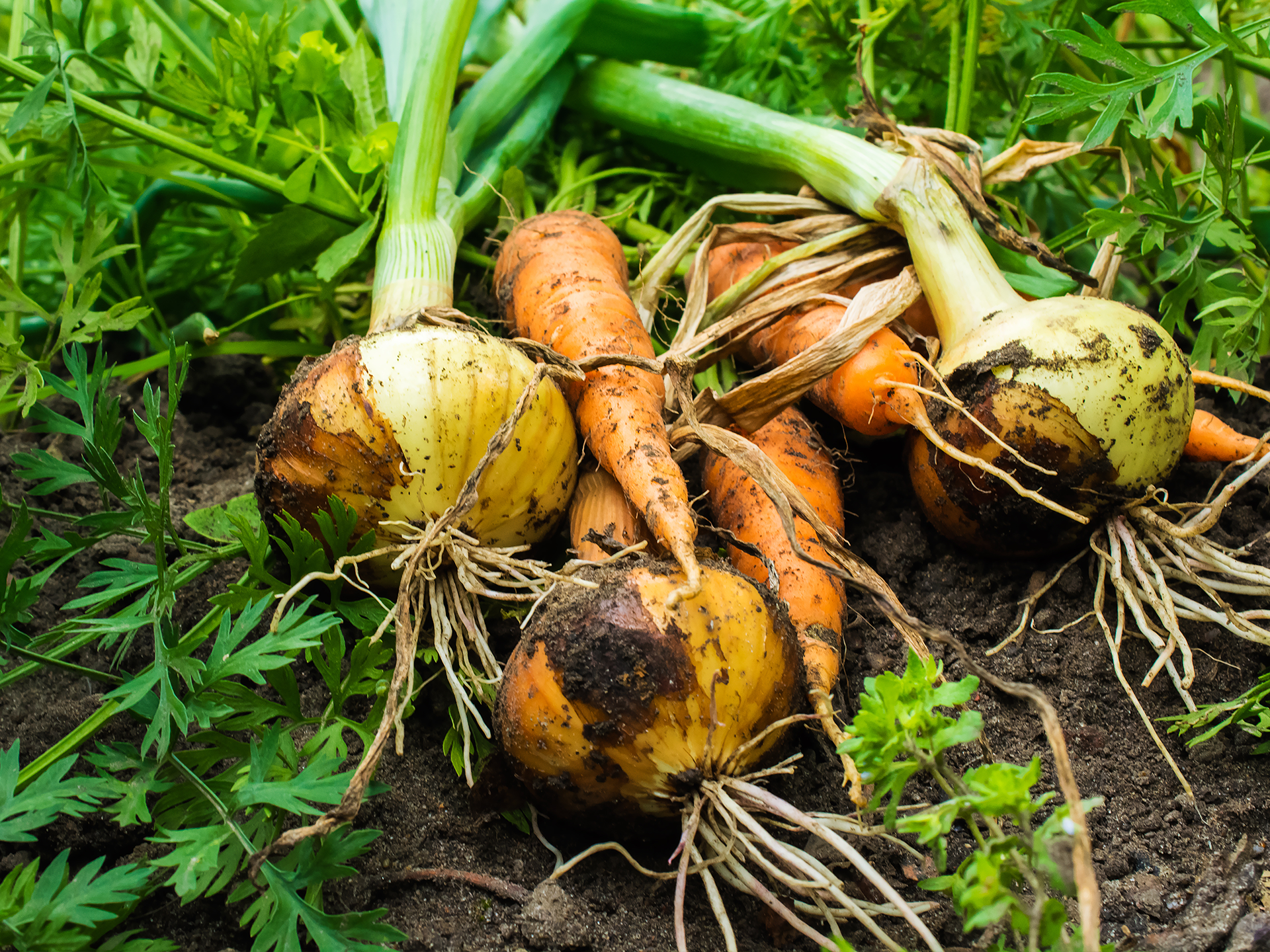 Sla | bieten, sluitkool, komkommer, koolrabi, prei, ajuin, erwt, pompoen, radijs, rabarber, schorseneer, aardbei, suikermais, tomaat, wortel, aardbei, wortels | peterselie, pastinaak, selderij |