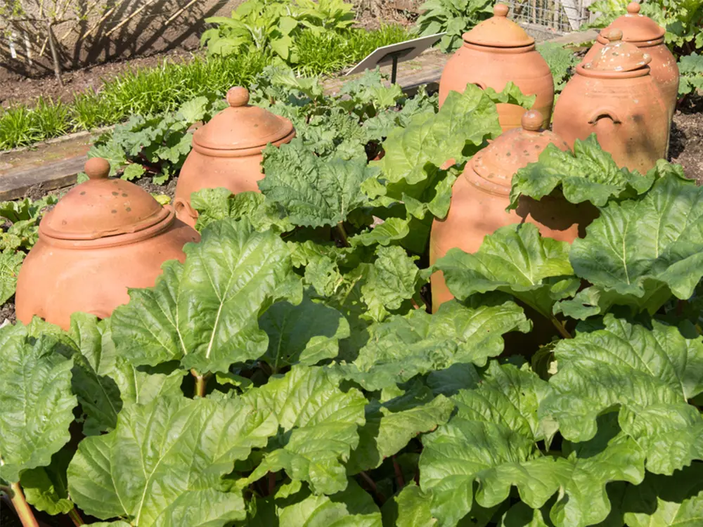Wil je vroeger oogsten, dan kun je rabarber forceren door te bleken. Vanaf januari of februari, zodra de eerste knoppen verschijnen (afhankelijk van het ras), plaats je een bleekpot of stolp over de plant om het licht weg te nemen. In de donkere, warme omgeving die zo ontstaat, ontwikkelt de plant zachtere, mildere stengels met minder oxaalzuur. Het resultaat is een heerlijk malse en knapperige voorjaarsdelicatesse.