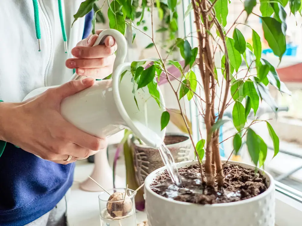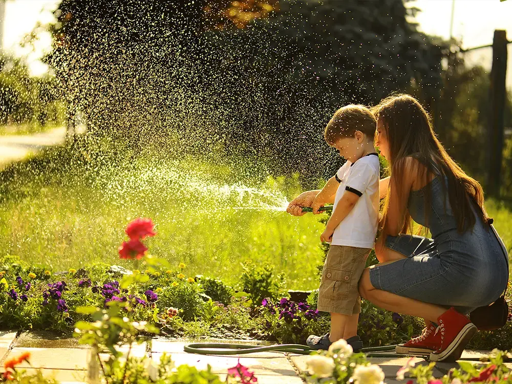 Geef ’s morgens of ’s avonds water. Op die koelere momenten zal het water minder verdampen. Het water dat je overdag geeft aan je planten, bereikt door de hitte vaak de wortels niet. Zo vlug is het verdampt. Daarom kan je eventueel water geven met korte pauzes in verschillende kleine beetjes. Bij oudere planten en heesters geef je best om de 2 dagen een grotere hoeveelheid water. Zo zorg je dat het water ook bij de diepere wortels geraakt.