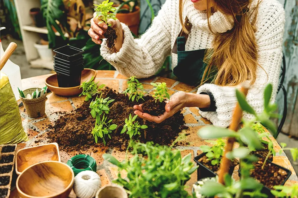 Planten verpotten, verplanten, aanplanten en zaaien