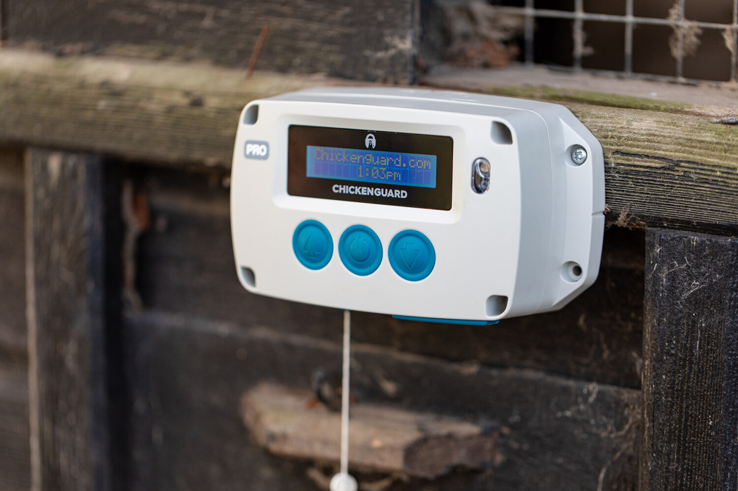 De Chicken Guard Pro deuropener is een handig toestel voor het automatisch sluiten van nachthokken voor kippen en ander pluimvee. Je kan het programmeren via de timer functie of via de aanpasbare lichtsensor.