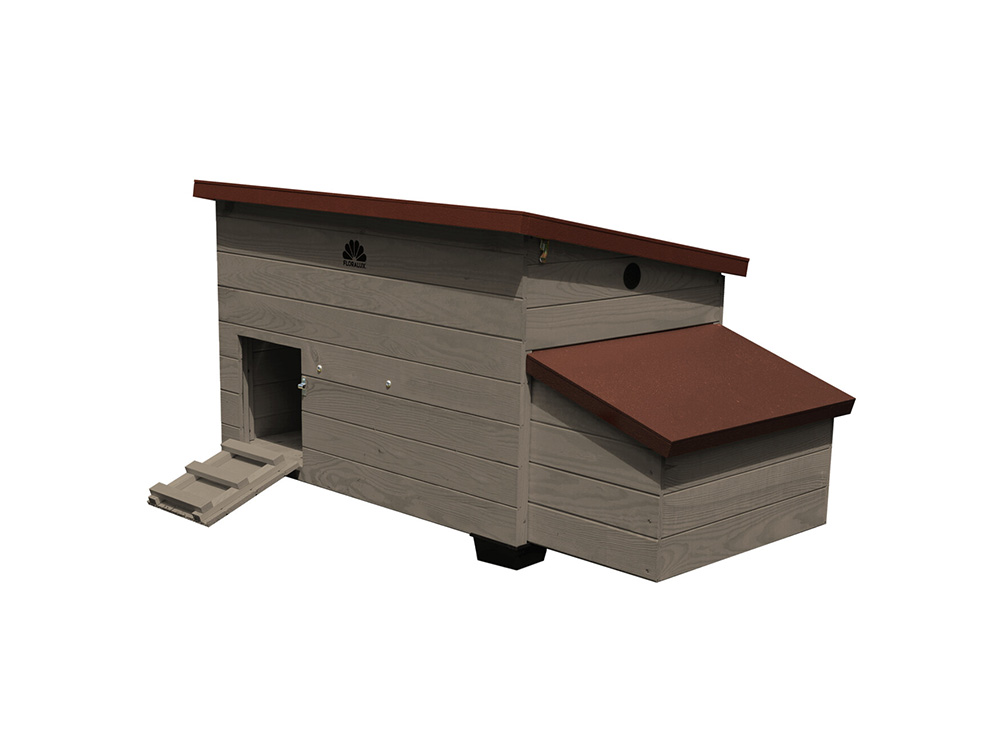 Bungalow Medium is ons middenste model met plat dak, geschikt voor 3 grote tot 6 middelgrote kippen.