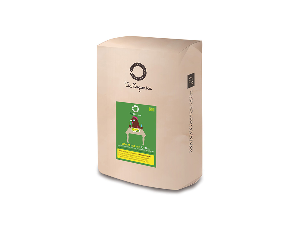 Via Organica bio Farmermix is samengesteld uit een rijke selectie aan granen en zaden, volledig zonder korrels en soja van biologische teelt. Dit voeder is 100% plantaardig en vrij van kunstmatige kleurstoffen en genetisch gemodificeerde zaden. Het eiwitrijk voer is geschikt voor een natuurlijke eierproductie bij hennen vanaf 20 weken oud.