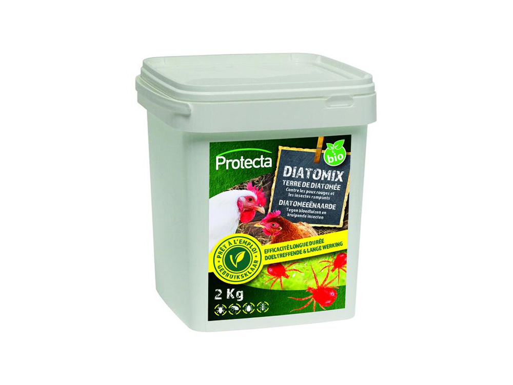 Deze diatomeeënaarde wordt gebruitk om bloedluizen en andere insecten te bestrijden. Het is een gebruiksklare biocide met insectenverdelgende en mijtendodende eigenschappen. Protecta Diatomix kan gebruikt worden in kippenhokken en andere plaatsen waar dieren worden gehouden.
