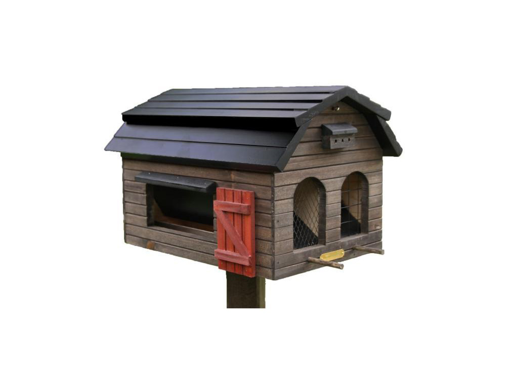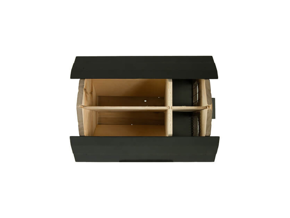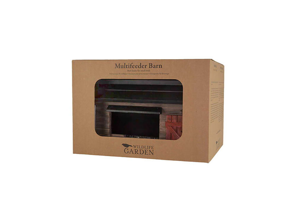 Dit unieke voederhuis heeft de vorm van een landelijke houten schuur. Het is voorzien van vier compartimenten waarin je verschillende soorten voer kunt aanbieden: vetbollen, pinda's, zonnebloempitten, zadenmixen,.. Het aanbieden van een grote verscheidenheid aan voer, vergroot de variatie aan vogels die jouw tuin bezoeken. De voederschuur wordt beslist een begeerde plek in jouw tuin!