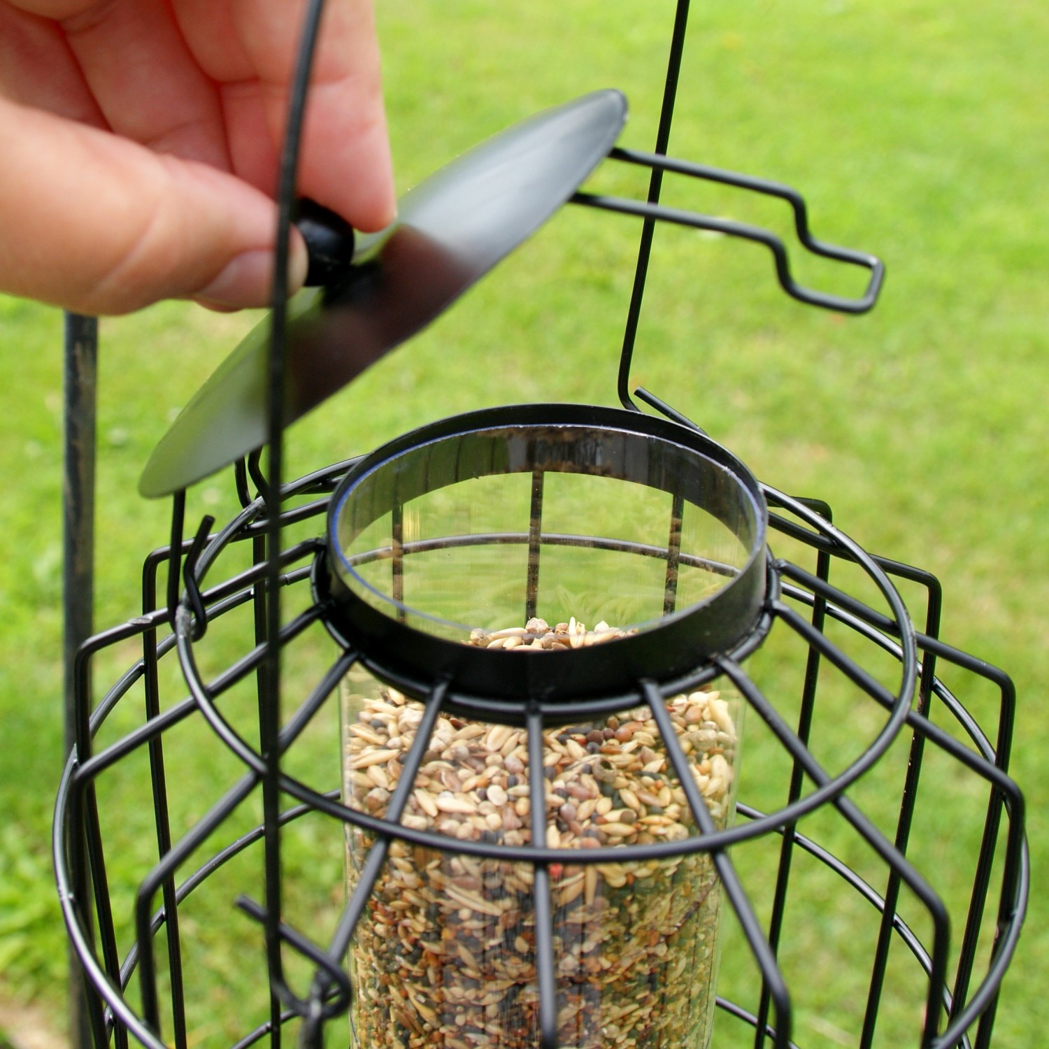Dankzij de beschermkooi kunnen alleen kleine tuinvogeltjes bij het voer. Zo geniet je langer van de vele kleine vogels die rustig eten zonder zich zorgen te maken over roofvogels of katten.