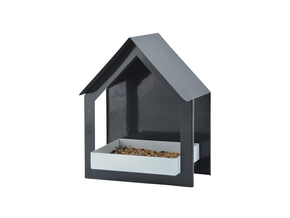 Het antracietgrijze vogelhuisje kan overal worden opgehangen - aan de gevel, tuinscherm, tuinmuur, enz. Het witte schaaltje is eenvoudig uitneembaar, waardoor het voer gemakkelijk bij te vullen is en het schaaltje eenvoudig te reinigen is.