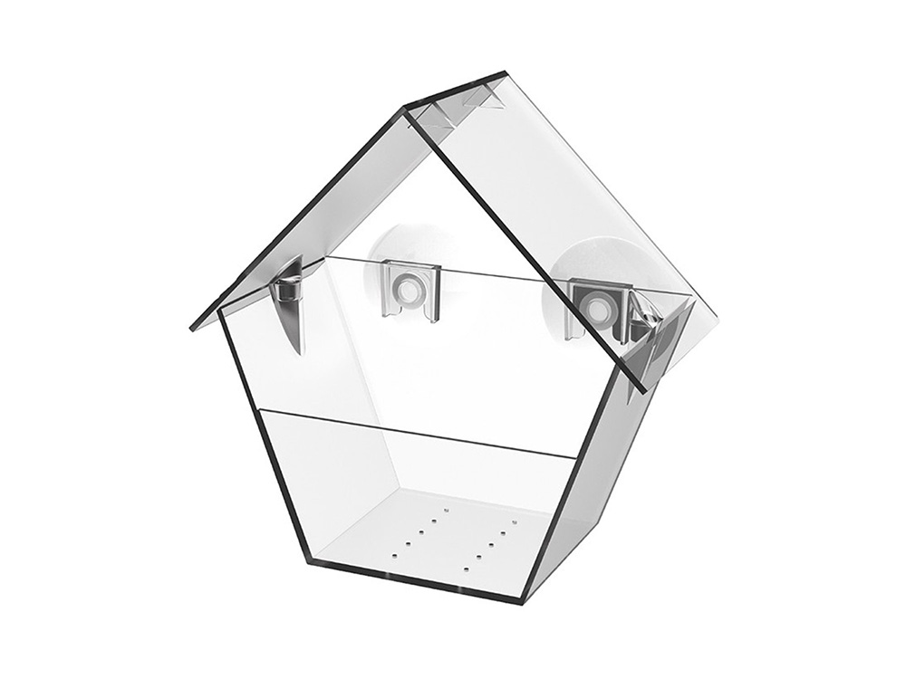 Het raamvoederhuis is voorzien van twee zuignappen en heeft een geperforeerde bodem om eventueel regenwater af te voeren.