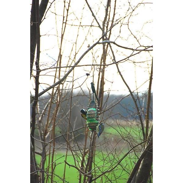Met deze decoratieve donkergroene vogelvoederveer van Esschert Design, hang je moeiteloos vetbollen op in de tuin of op het balkon. Bovenop staat een huisje of een vogelfiguur als decoratie waardoor deze vetbolspiraal een unieke uitstraling heeft. De vogels in de tuin gaan eraan hangen en met gemak het vet uit de bol halen, wat een prachtig schouwspel oplevert.