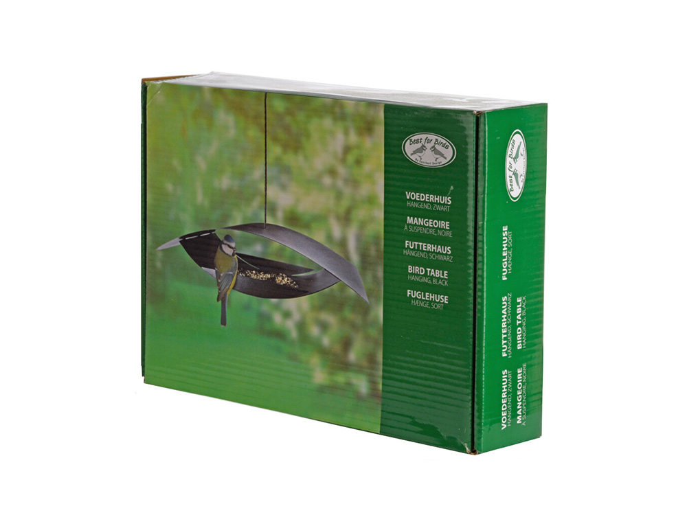Deze moderne voederschaal van Esschert Design is een echte blikvanger in de tuin, op het terras of op het balkon. Het ontwerp is open aan beide zijkanten. De bovenzijde van de schaal heeft een ruime oversteek over de onderste schaal, waardoor het voer altijd droog blijft, zelfs bij regen. Dankzij de twee opstaande randen aan de onderkant kan het voer niet uit de schaal vallen.