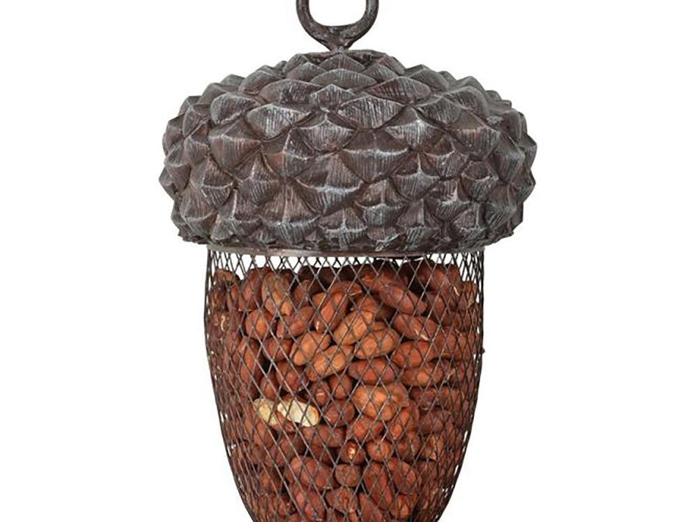 Eikels zijn een belangrijke voedselbron voor heel wat dieren zoals eekhoorns en vogels. Deze reuze eikel is niet eetbaar maar vormt een originele houder voor pinda's, zonnebloempitten en andere noten die heel wat vogels naar jouw tuin zullen lokken.
